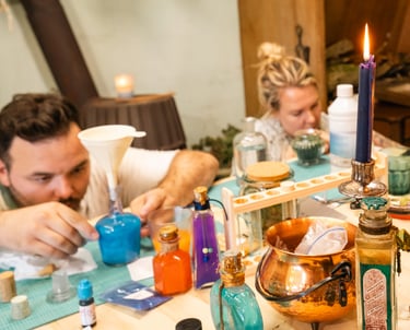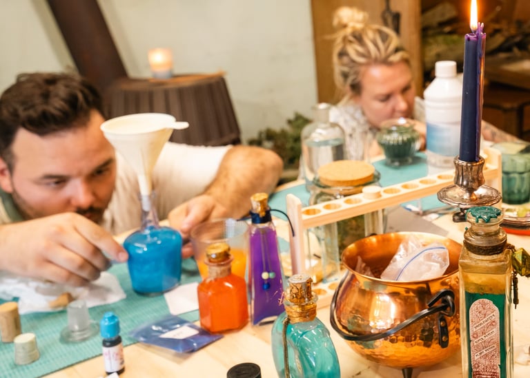 Stap binnen in het atelier van de alchemist en maak je eigen magische brouwsels! Tijdens deze speelse, praktische workshop meng je kleuren, texturen en vreemde ingrediënten om decoratieve toverdranken en mysterieuze elixers te creëren. Een creatieve sessie waar je de beginselen van 'prop making leert' en verbeelding het voortouw neemt. (ook leuk voor volwassenen!)