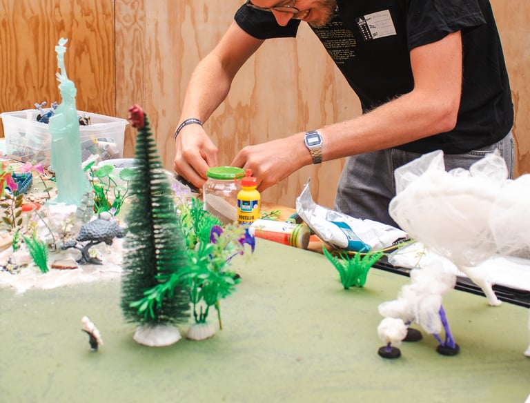 In deze workshop bouwen we samen een wereld vanaf nul. Met speelse opdrachten, tekenen, boetseren en verhalen vertellen geven we vorm aan een dorp, land of zelfs een hele planeet. Een hands-on, fantasievolle workshop waar kunst en verhaal samenkomen. Ideaal als creatieve groepsactiviteit of als open walk-in sessie op festivals en in musea.